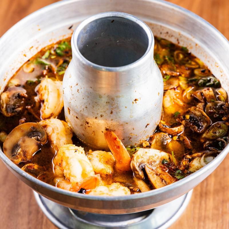 A classic Thai hot-and-sour soup made with shrimp, lemongrass, galangal, kaffir lime leaves, mushrooms, fresh lime juice, and chili. Bold, aromatic, and perfectly balanced between spicy, tangy and serve with rice