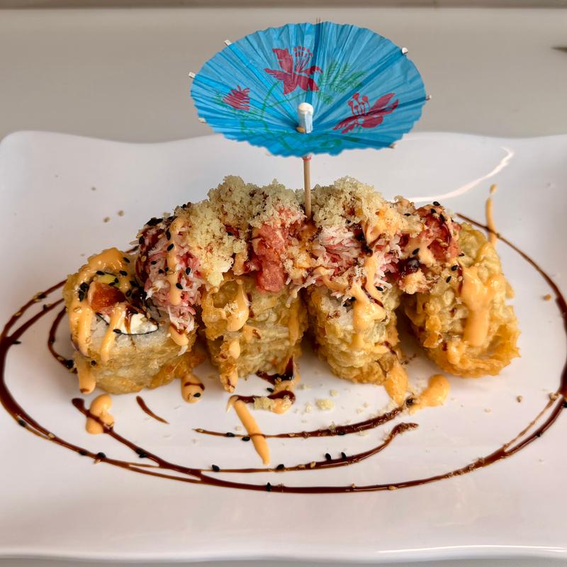 Spicy tuna, cream cheese, avocado, deep fried, topped with spicy mayo and eel sauce