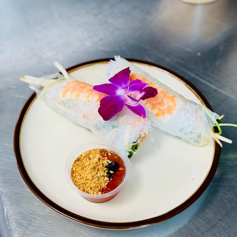 Rice paper rolls filled with crisp lettuce, fresh herbs, vermicelli noodles, and shrimp. Served with a house-made tamarind peanut sauce