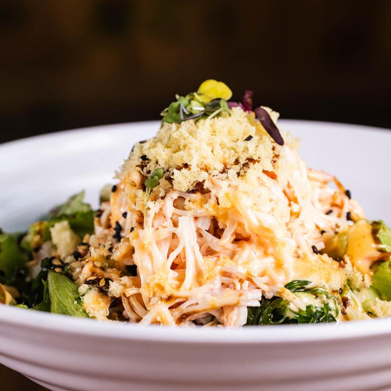 Tuna tataki, snow crab, avocado, ponzu sauce, sesame oil, scallion